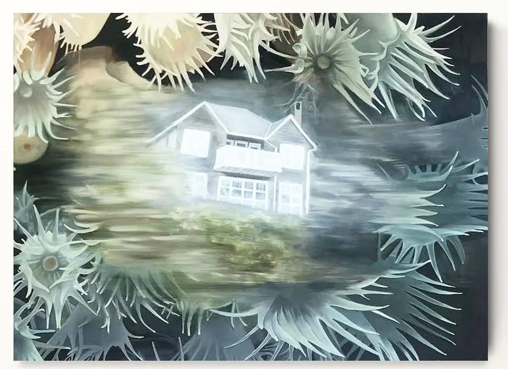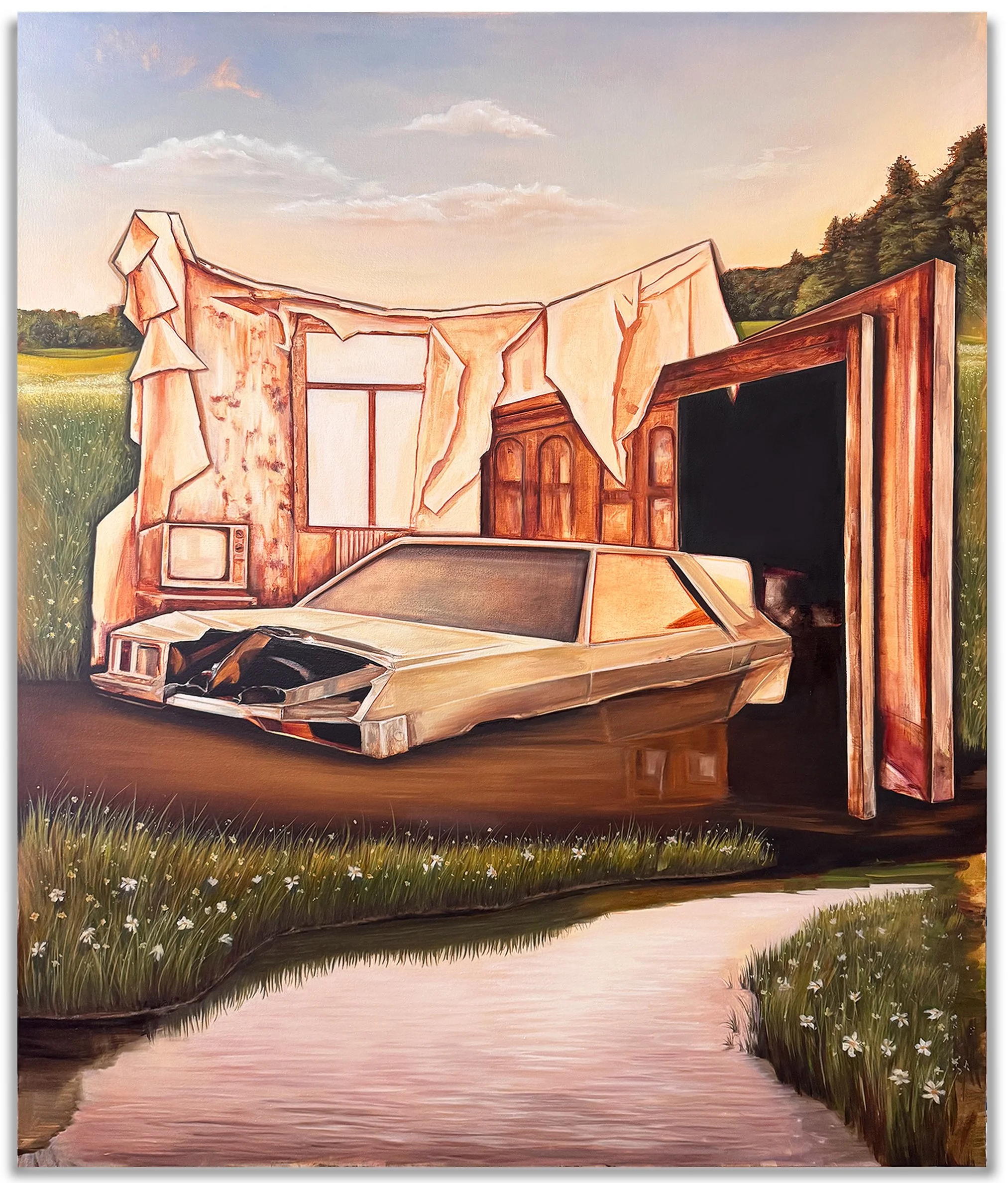 too close to home, 2025, oil on canvas, 24 x 30 in
